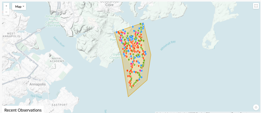 This participatory science project was created through the iNaturalist platform in 2020 to document the variety of plants, animals and fungi found at the Greenbury Point Conservation Area. iNaturalist is a free online community that allows users to share and discuss observations of nature. Visitors are encouraged to participate by snapping photos during their visit and uploading them to the iNaturalist site. The data is accessible to researchers, educators, hobbyists and anyone with an interest in learning about the living world around us.